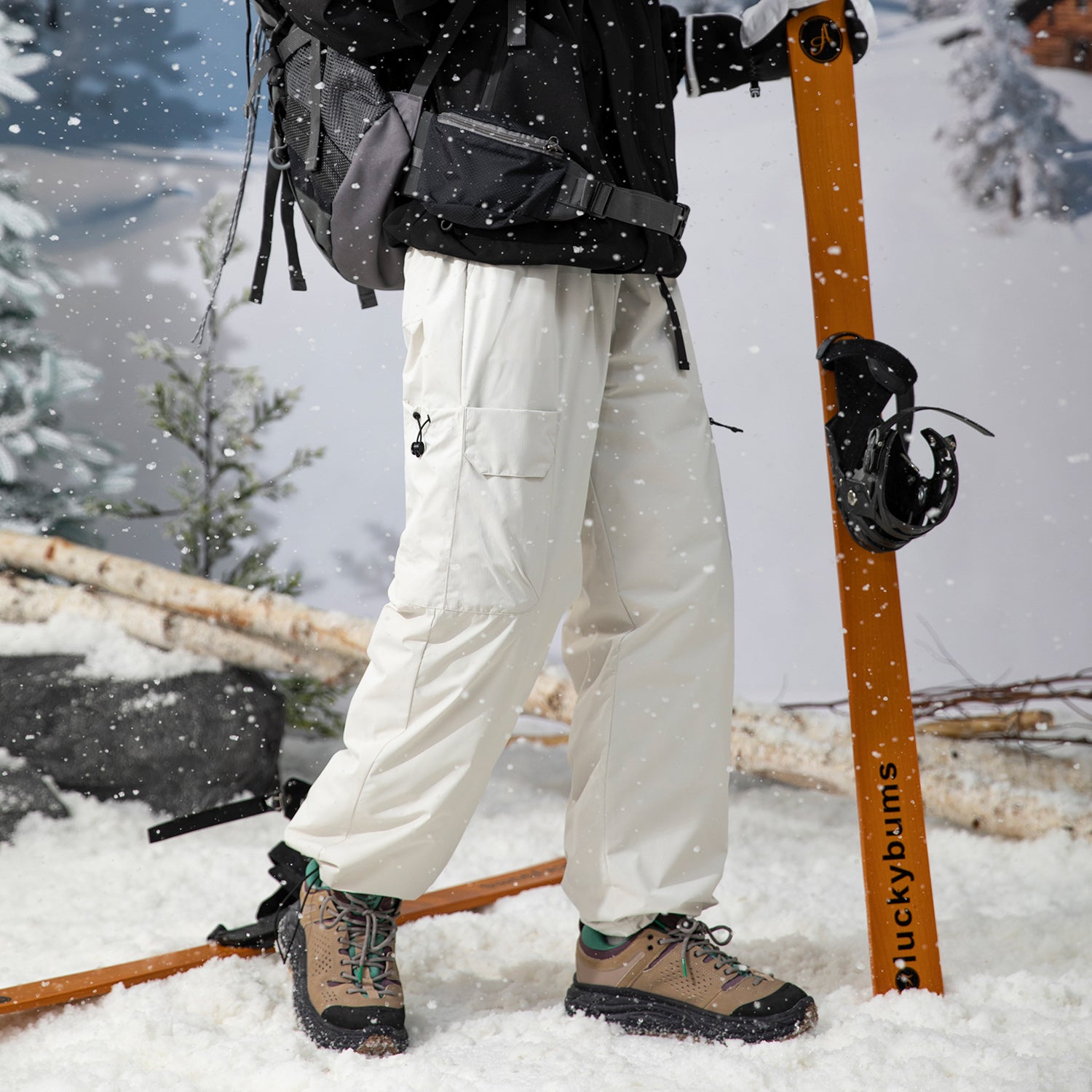 Oq o'rdak momig'i bilan to'ldirilgan membranali yuzasiga ega, juda sovuq harorat uchun mo'ljallangan funktsional puf shimlar. Yupqa shakldagi shimlar suv o'tkazmaydigan va shamol o'tkazmaydigan, keng cho'ntaklar va sozlanishi belga ega.