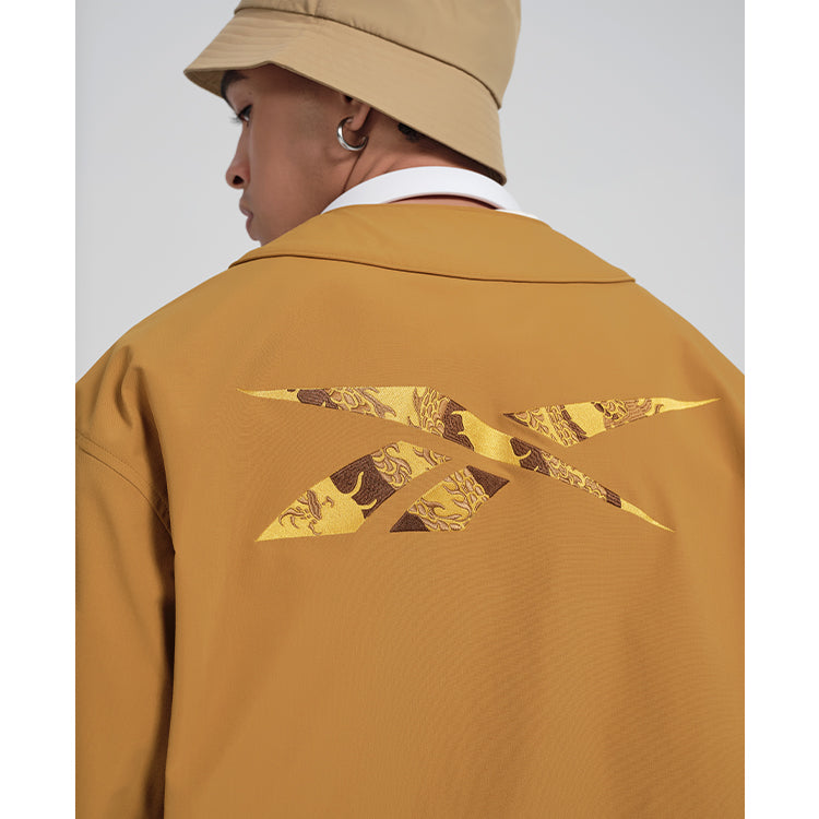 Ajdaho yilini nishonlaydigan kalta yengli, tushirilgan yelkali va kashta tikilgan keng poliester kardigan. Ushbu suv o'tkazmaydigan, tugmachali dizayn yoz uchun juda mos keladi.