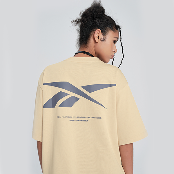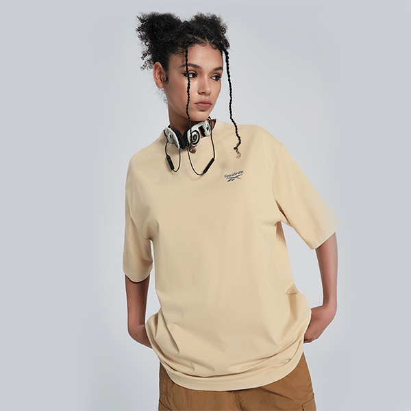 Reebok moda yo'nalishi Amerika oddiy qulay yuz dumaloq bo'yinli sport erkin qisqa yengli nafas oladigan dopaminli futbolka erkaklar va ayollar bej