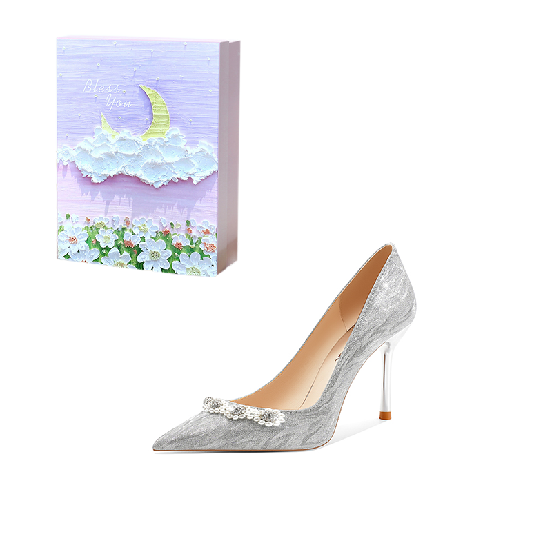 Kumush rangdagi bu nafis Robinhood to'y poyabzallari ingichka baland poshnali va marvaridli bezaklarga ega. Romantik fransuzcha uslubda ishlab chiqarilgan ular eksklyuziv sovg'a qutisiga solingan bo'lib, ularni to'y yoki unashtirish uchun juda mos qiladi.