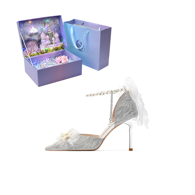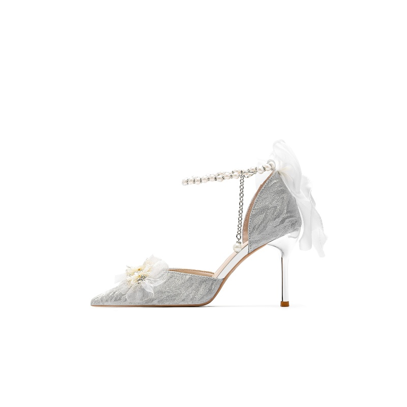 Romantik fransuzcha uslubdagi nafis Robinhood poyabzallari. Kumush rang va ingichka poshnali (6-8 sm) nafis dizayn tashqi ko'rinishning nafisligi va nafisligini ta'kidlaydi. PU materialidan tayyorlangan, uchli uchi va tasmali mahkamlagich qulay o'tirishni ta'minlaydi. To'y, unashtirish yoki maxsus tadbir uchun juda mos keladigan ular kelinning libosiga juda mos keladi.
