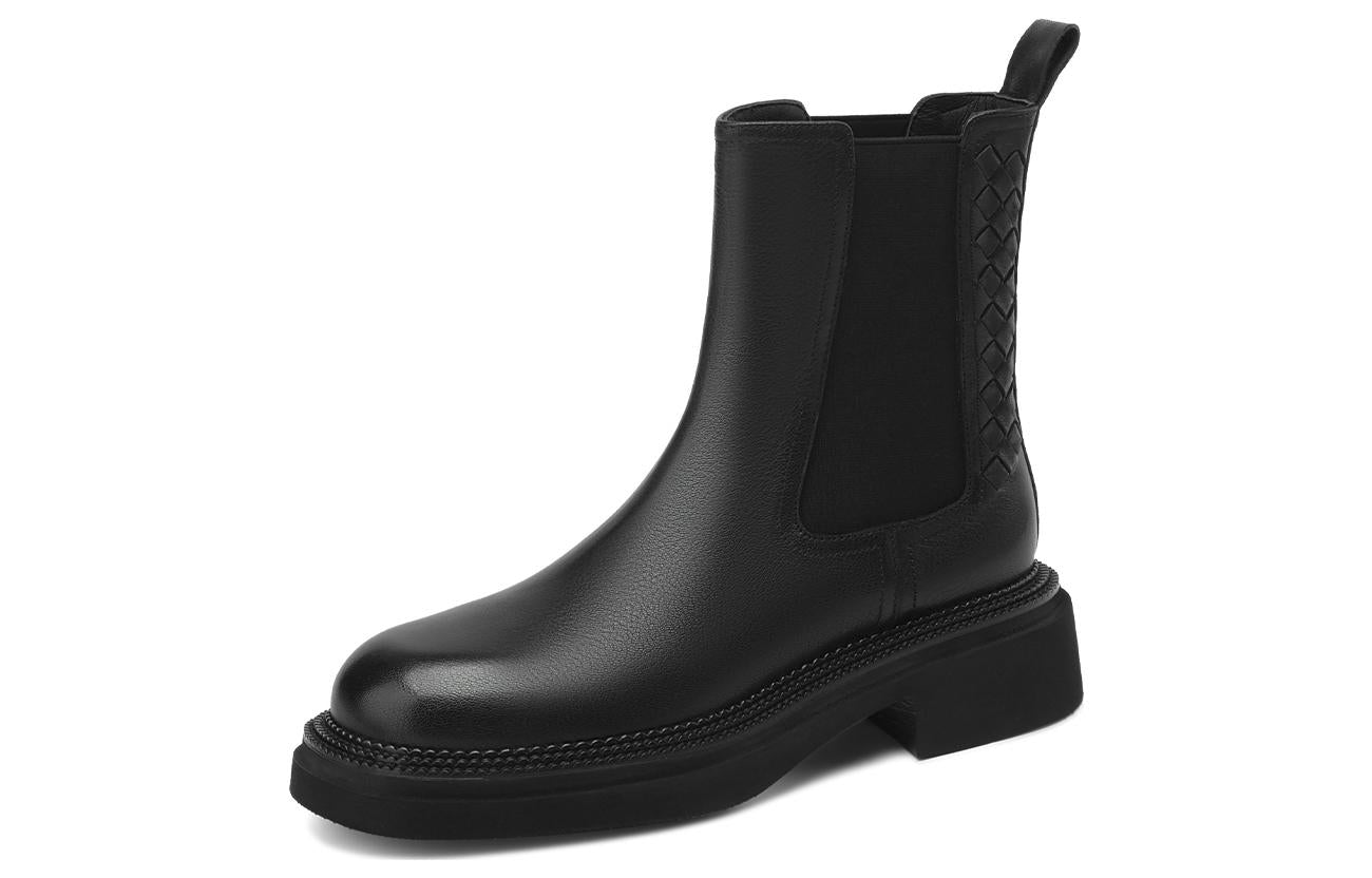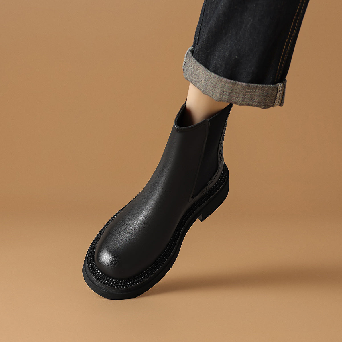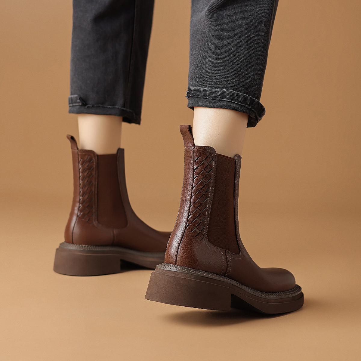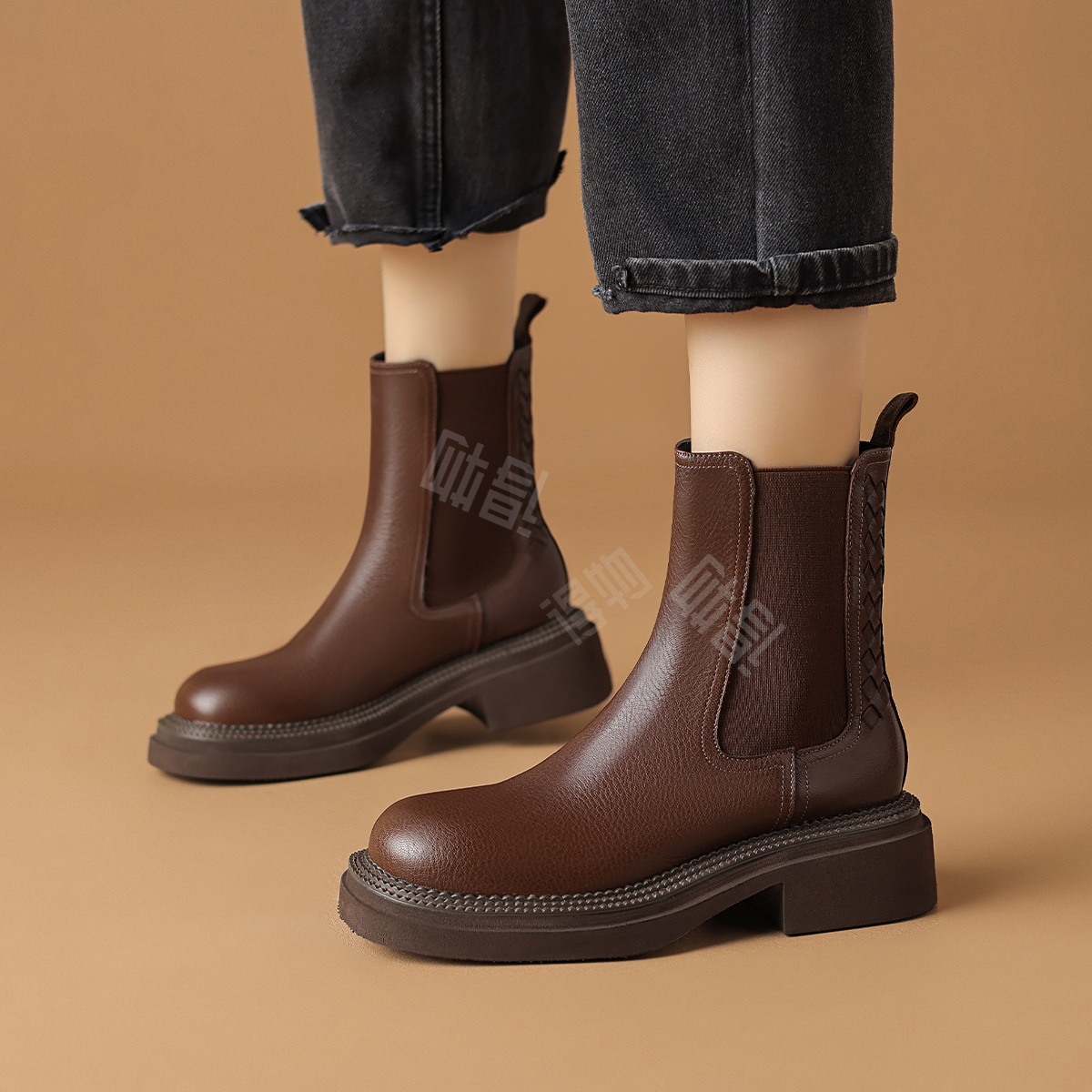Qo'y terisidan tikilgan, 5 sm poshnali moda kalta Chelsi etiklari. Ular kundalik kiyim uchun qulaylik va zamonaviy ko'rinishni ta'minlaydi.