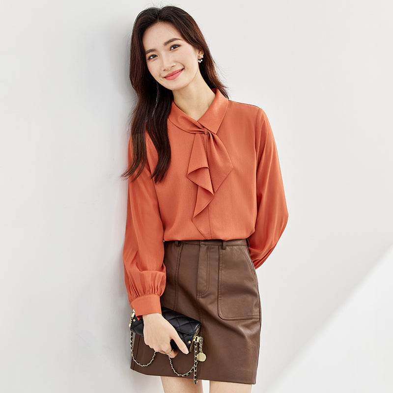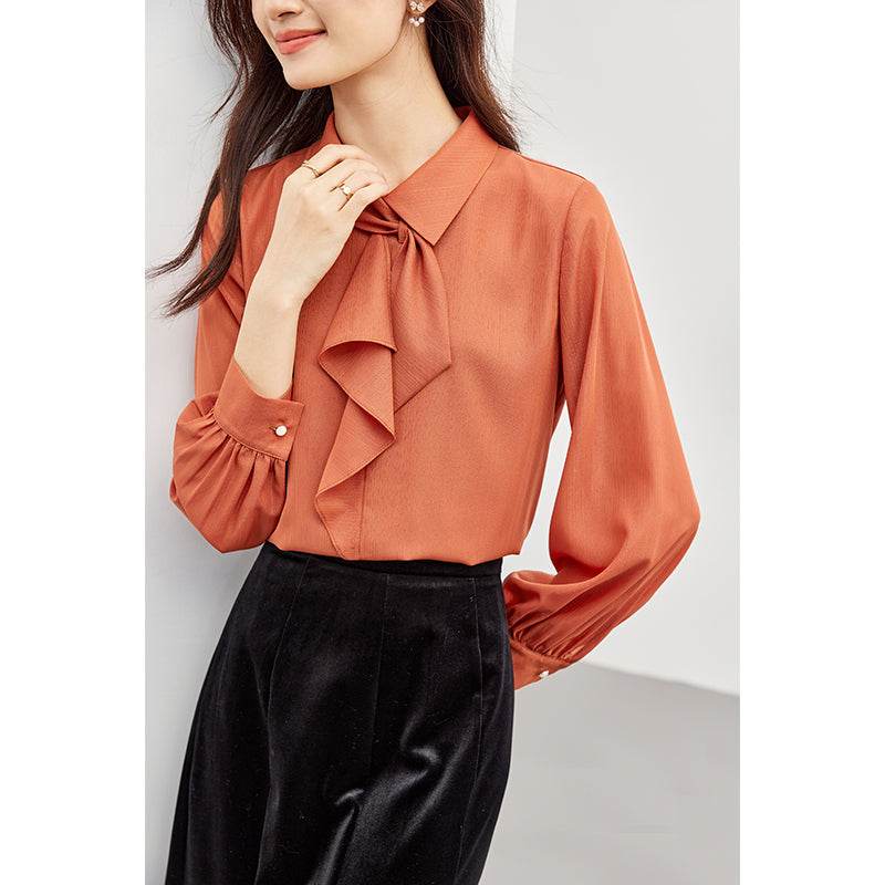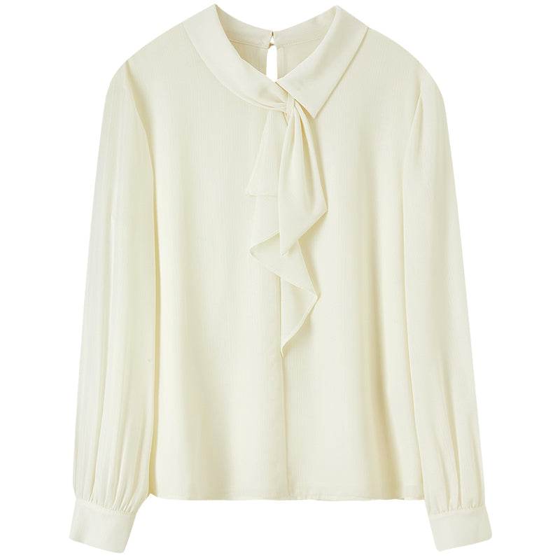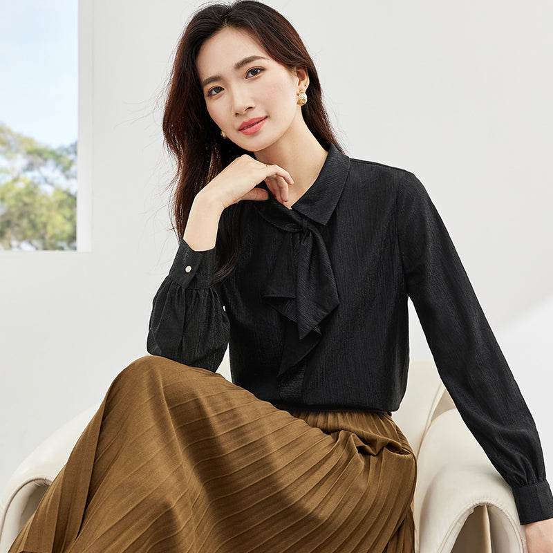 Shifon bo'yinbog'li oqlangan bluzka, zamonaviy qiyofa yaratish uchun ideal. Yengil va havodor material qulaylikni ta'minlaydi, bu uni kundalik kiyim va maxsus holatlar uchun mos qiladi.