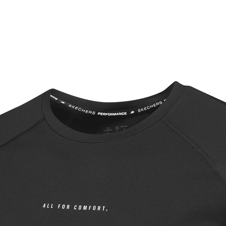 Skechers ekipaj bo'yinli kalta yengli ko'ylagi mashg'ulot paytida sizga qulaylik yaratish uchun nafas oladigan materialdan tayyorlangan. Suvga chidamli va tez quriydigan dizaynga ega model faol hayot tarzi uchun ideal.