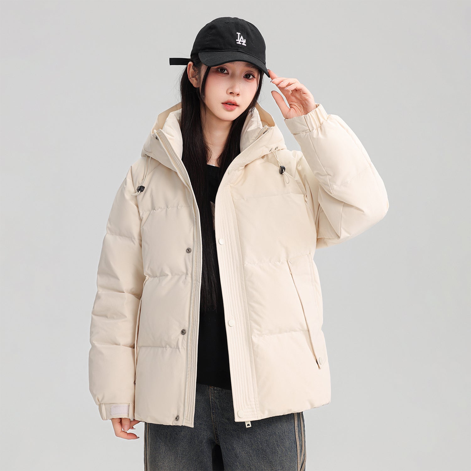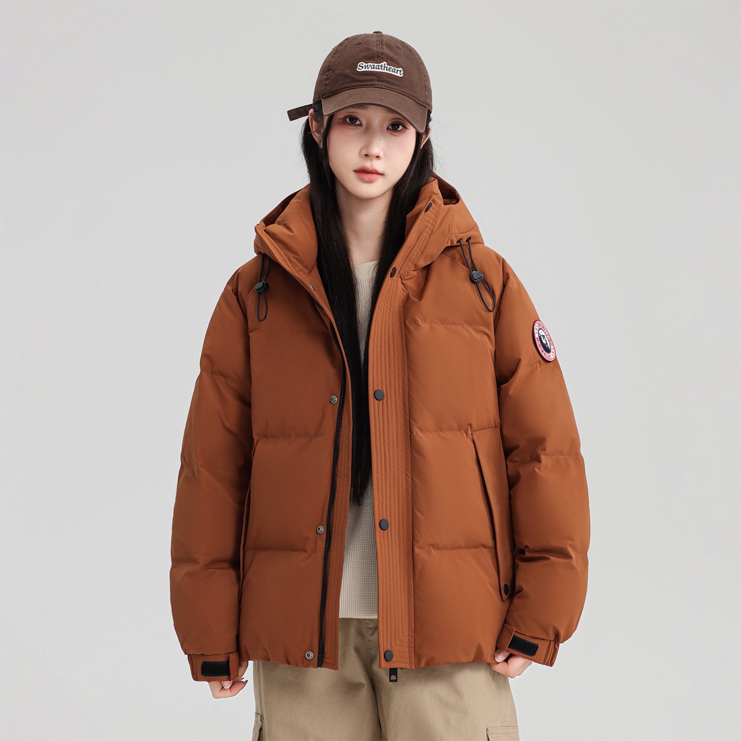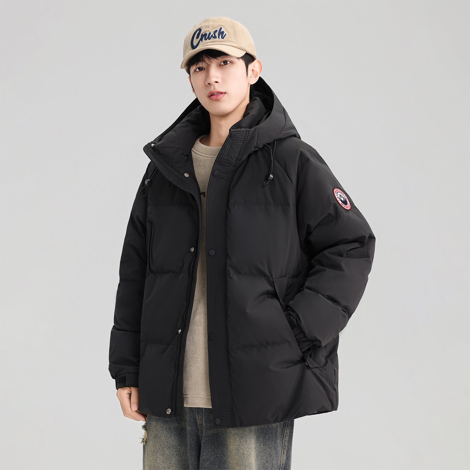 Пуховик в американском уличном стиле с капюшоном на регулируемых шнурках и манжетами на липучках, украшенный тематическим принтом «ледники». Модель свободного кроя наполнена утиным пухом высокой очистки, обеспечивая тепло и защиту от вылезания наполнителя.
