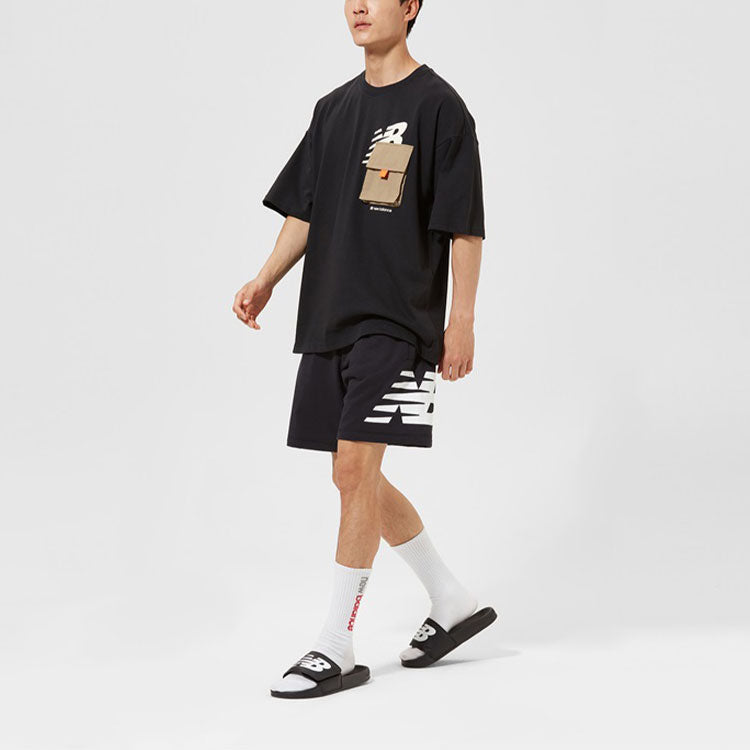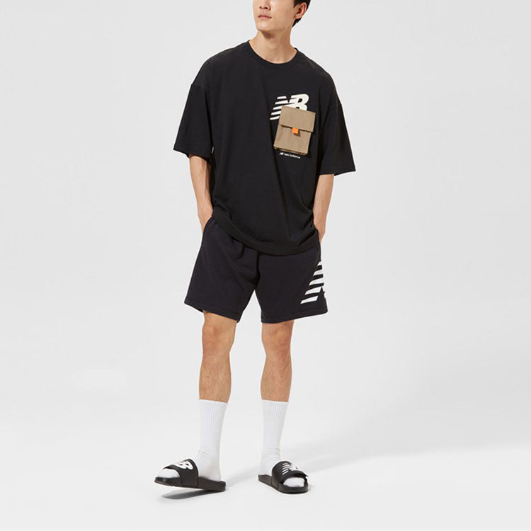 New Balance erkaklar uchun qora rangli Relaxed logotipli naqshli trikotaj shortilar