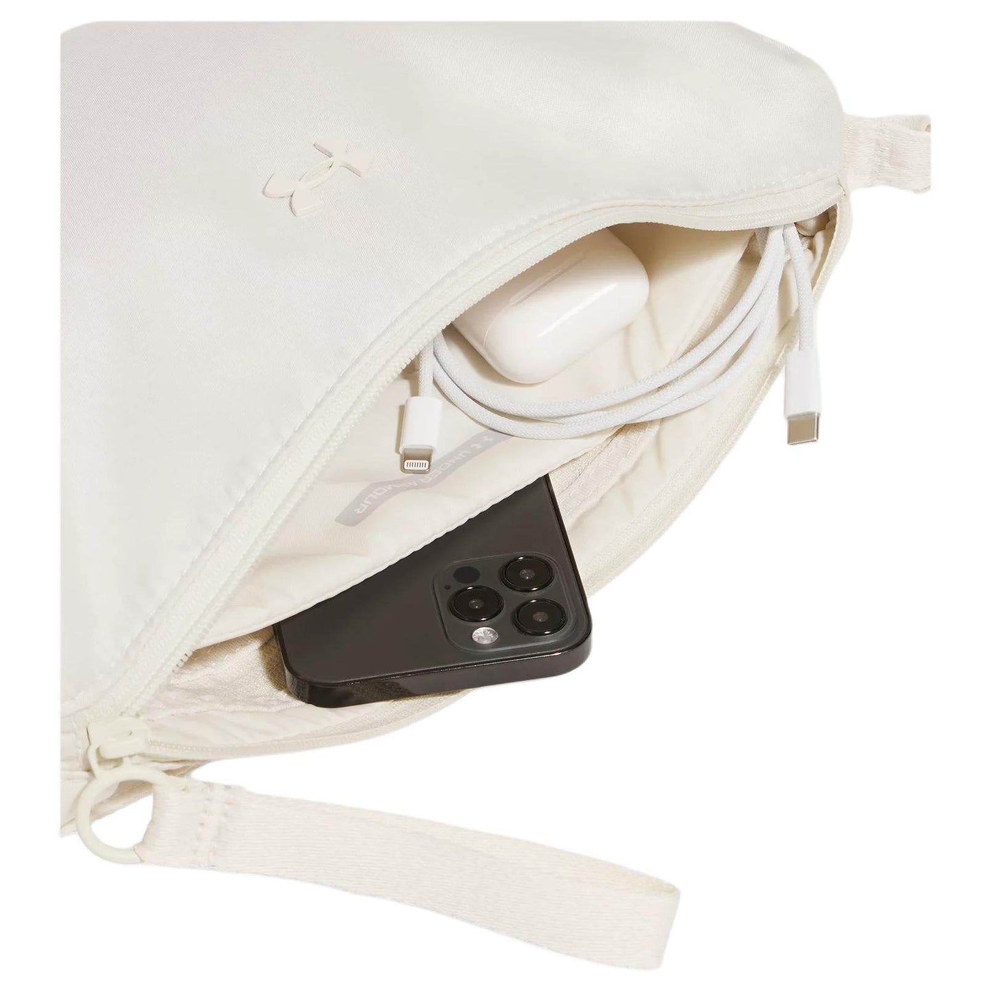 Under Armour Luna ayollarning fermuarli elkama-sumkasi suv o‘tkazmaydigan materialdan tayyorlangan va oq rangda. Zamonaviy va amaliy, kundalik foydalanish va ochiq havoda ishlash uchun ideal bo'lib, qulaylik va suvdan himoya qiladi.