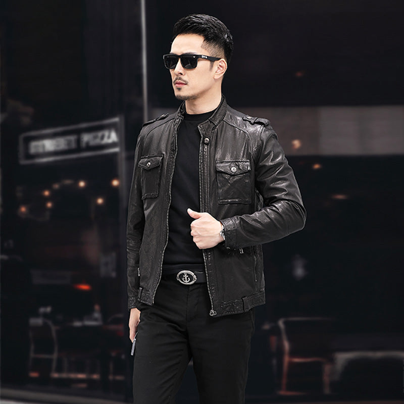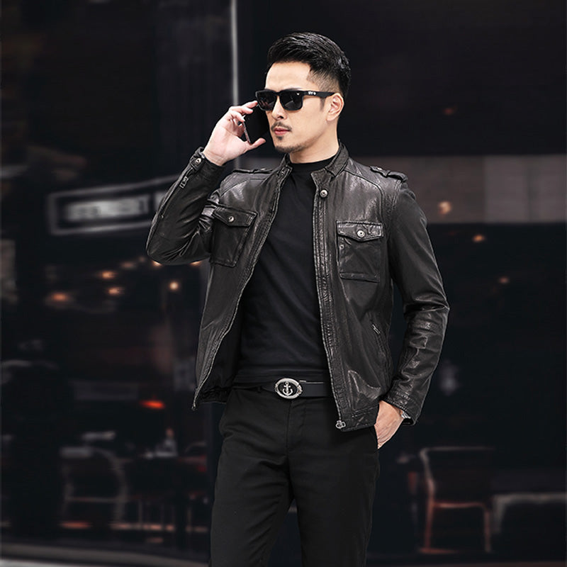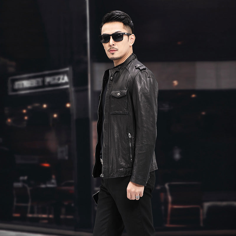 Yumshoq baraban qirqqichidan tikilgan va tik yoqali yengil, tekis bichimli erkaklar bayker uslubidagi kurtka. Kundalik kiyim uchun ko'p qirrali ish kiyimlaridan ilhomlangan uslub.