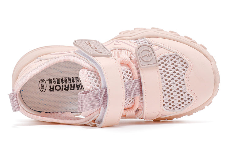 Sun'iy charmdan tayyorlangan, yopiq yumaloq uchli oddiy va ko'p qirrali bolalar sandallari. Yassi tagligi tortish va nafas olish imkonini beradi, bu esa uni kundalik kiyim uchun ideal qiladi.