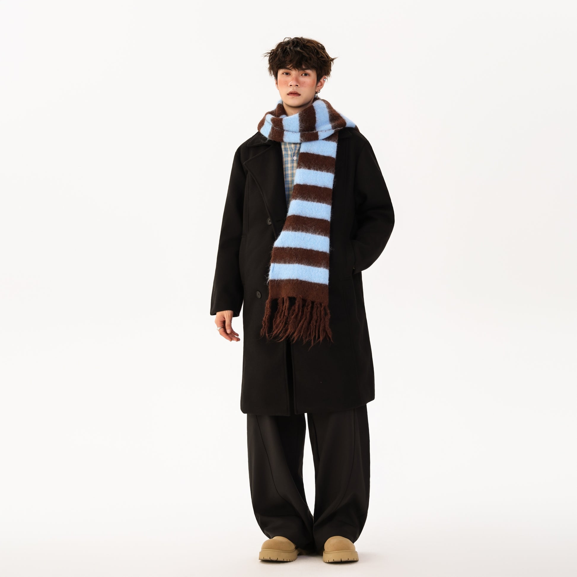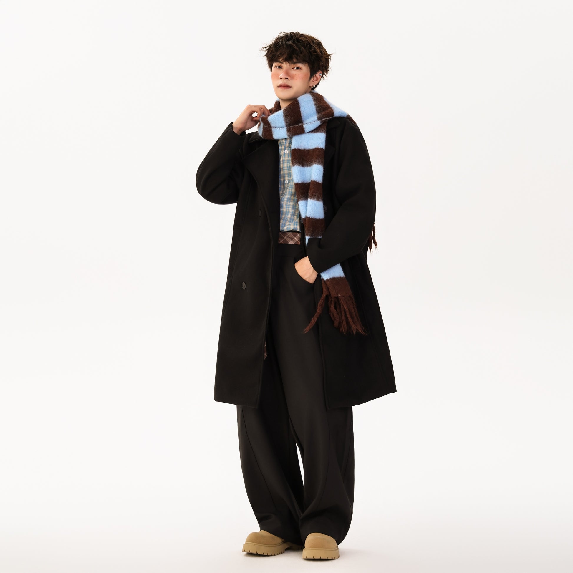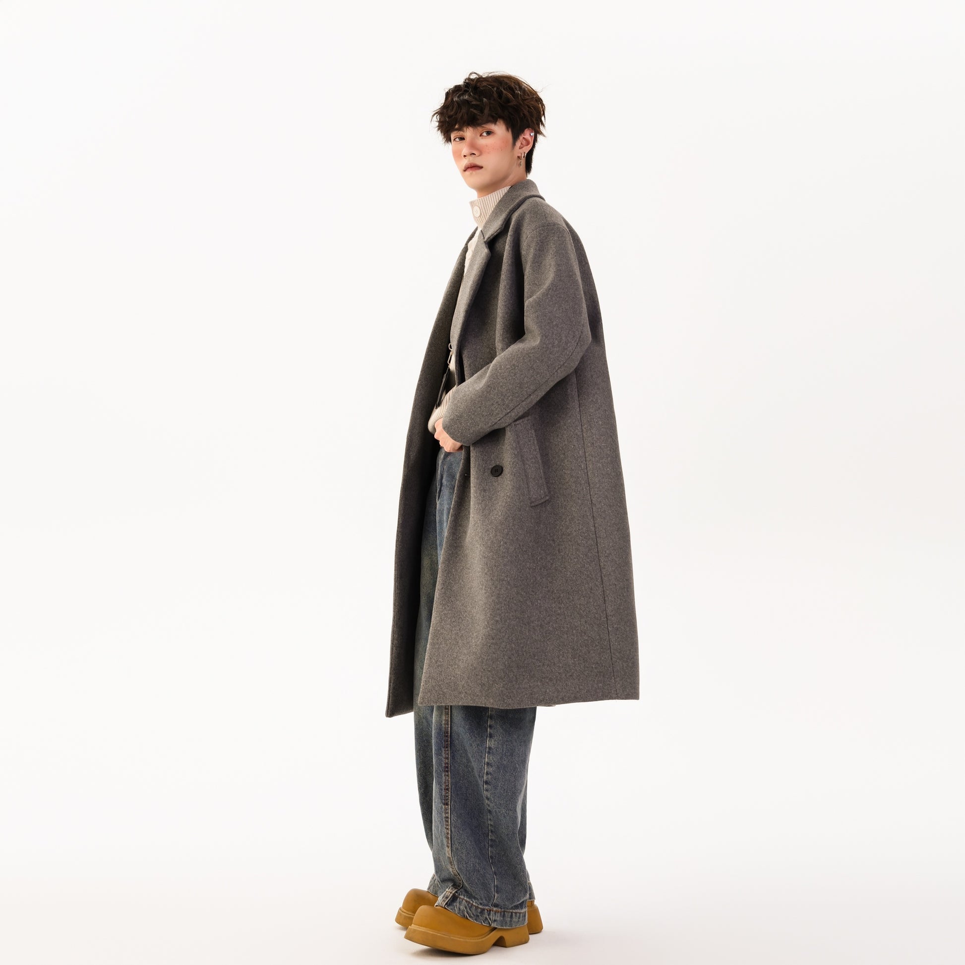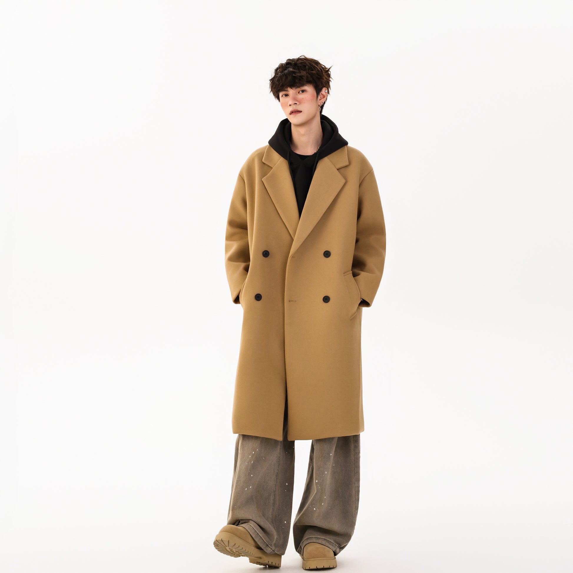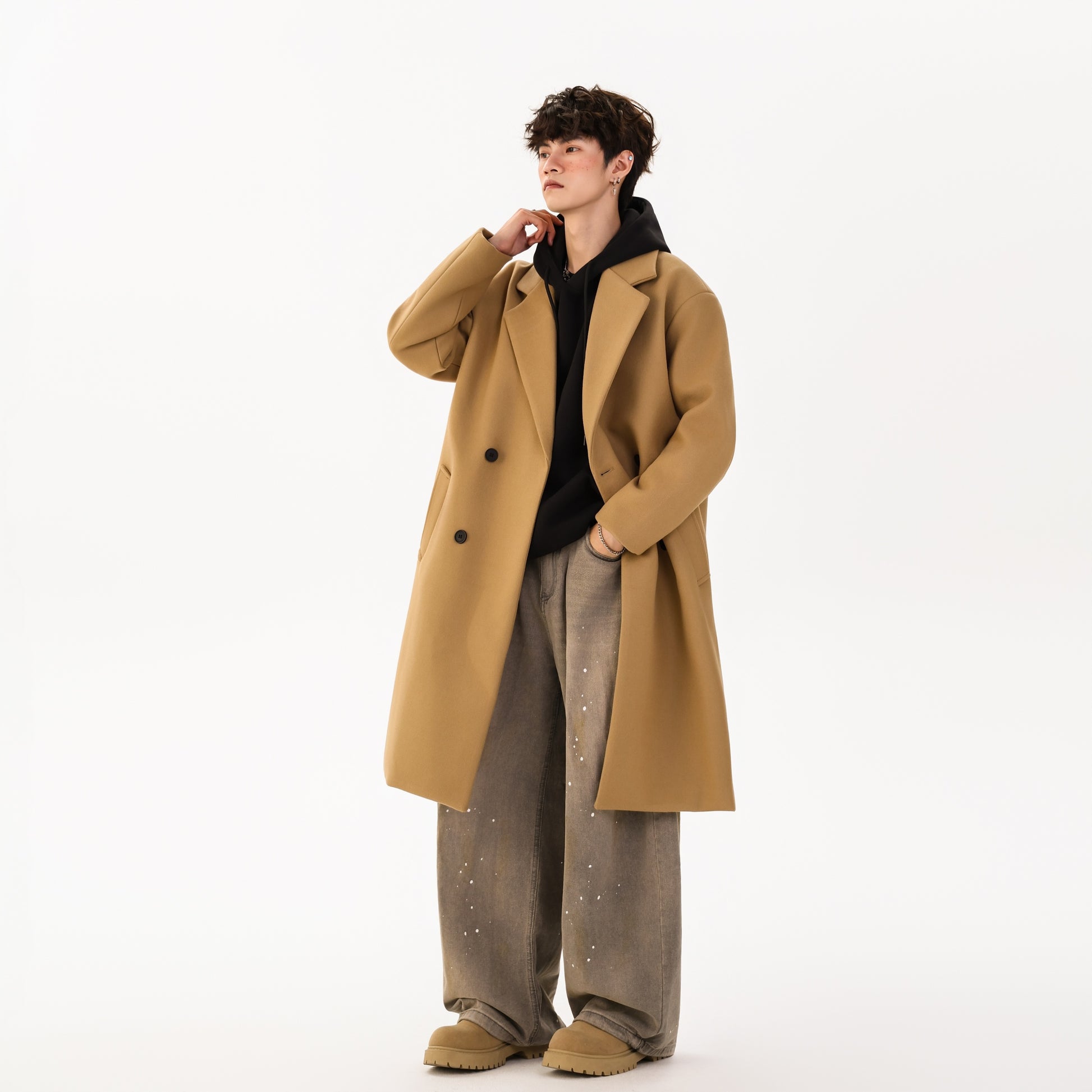 Ushbu YK&YB erkaklar koreyscha uslubidagi paltosi ikki yoqlama yopilish va erkin siluetga ega. Uzun yenglar va tushirilgan yelkalar bilan ushbu poliester dizayn kundalik kiyim va shahar hayoti uchun iliqlik, qulaylik va ko'p qirrali uslubni birlashtiradi.