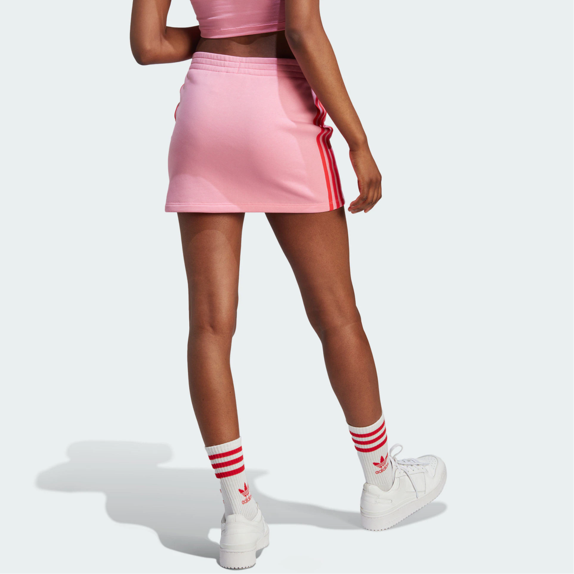 Spice Girls kolleksiyasidagi Adidas Originals ayollar yubkasi yorqin pushti rangda bo‘lib, vertikal chiziqlar va brend logotipi bilan bezatilgan. Yuqori bel va zamonaviy dizayn bilan u atletik uslub va tasodifiy moda elementlarini birlashtiradi. Ushbu yubka jonli va moda qiyofasini yaratish uchun juda mos keladi, yozgi yurishlar yoki partiyalar uchun juda mos keladi. Yengil va qulay materialdan tayyorlangan, u harakat erkinligini ta'minlaydi va kiyish qulay.
